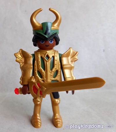 I am not fond of the arm armor or the humongous sword, but love the chest armor and the helmet... The helmet is new in this color